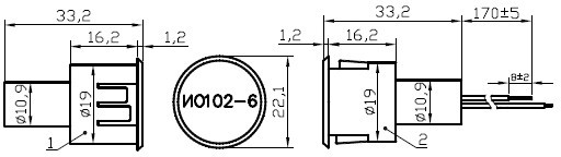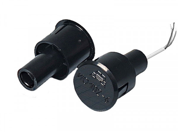 ИО 102-6П - извещатель врезной охранный точечный магнитоконтактный с перекидными типа (НО и НЗ) контактами, в корпусе из полистирола, с проводным выводом в обычной изоляции и длиной (0,17м) без защитного рукава и предназначенным для организации устройств типа «ловушка», блокировки дверных и оконных проемов, а также других конструктивных магнитопроводящих (металлических - толщиной не более 0,5мм) и магнитонепроводящих (алюминиевых, деревянных и т.д.) элементов зданий и сооружений на открывание/закрывание и смещение с выдачей извещения о тревоге на пульт централизованного наблюдения, прибор приёмно-контрольный или концентратор путем переключения контактов геркона.