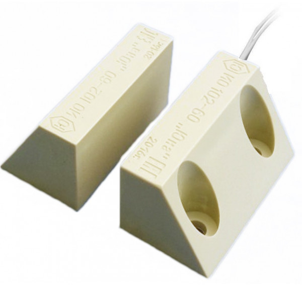 ИО 102-61 Б2П - извещатель накладной охранный точечный магнитоконтактный с нормально-открытого типа (НО) контактами, в корпусе из пластмассы и белого цвета, с проводным выводом кабеля КСПВГ 2х0,12 и длиной (0,6м) без защитного рукава предназначен для блокировки гаражных ворот, ангаров, железнодорожных контейнеров, телефонных шкафов и других конструктивных магнитопроводящих (металлических) и магнитонепроводящих (алюминиевых, деревянных и т.д.) элементов зданий и сооружений на открывание и смещение с выдачей в шлейф приёмно-контрольного прибора извещения о тревоге путем размыкания контактов геркона.