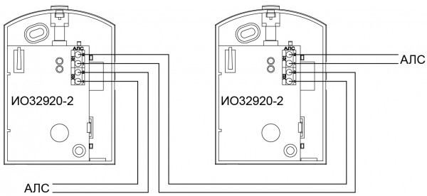 Питание извещателя и передача сигналов осуществляется по униполярной адресной линии связи (АЛС).