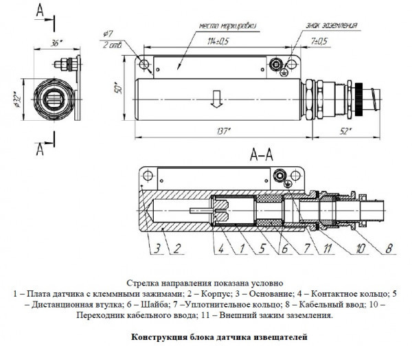 Алюминиевый сплав, варианты кабельных вводов К (кабель 8-14мм) ТG-1/2 (кабель 8-14мм в трубе G1/2) ТG-3/4 (кабель 8-14мм в трубе G3/4) Б (бронекабель 8-18мм) КМ15 (металлорукав 15мм) КМ20 (металлорукав 20мм) КМ25 (металлорукав 25мм). Нормально разомкнутый. 1ExdIICT6Gb, IP67.