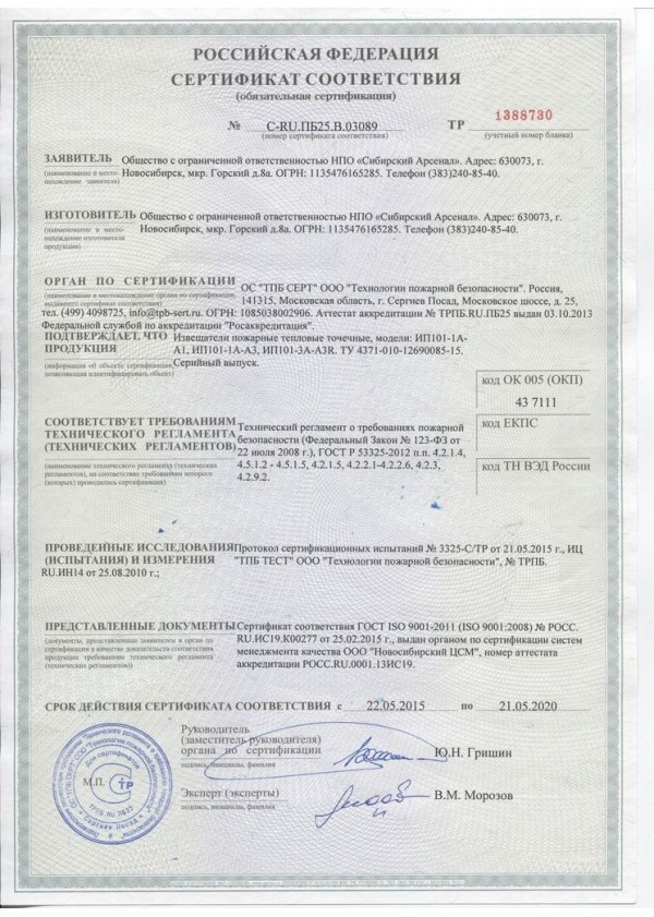 - Извещатель пожарный тепловой максимальный ИП 101-1A-А3