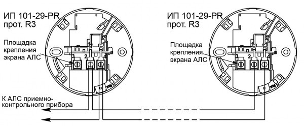 Питание и информационный обмен извещателя осуществляются по двухпроводной АЛС.