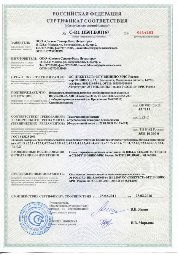 Комбинированный (дым/тепло) Leonardo-OT без базы В401L