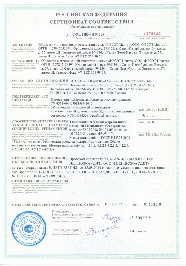 Извещатель дымовой двухпроводный