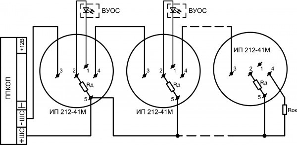 ИП 212-41М - точечный дымовой 2-ух проводный (4-х проводное подключение возможно только через отдельно приобретаемое устройство согласования: УС-02) оптикоэлектронный пожарный извещатель, токопотребляющий, восстанавливаемый (многократного действия), обычного исполнения предназначен для обнаружения загораний, сопровождающихся появлением дыма, и передачи на ППКОП сигнала тревожного сообщения (Пожар) за счёт дискретного уменьшения внутреннего сопротивления извещателя.