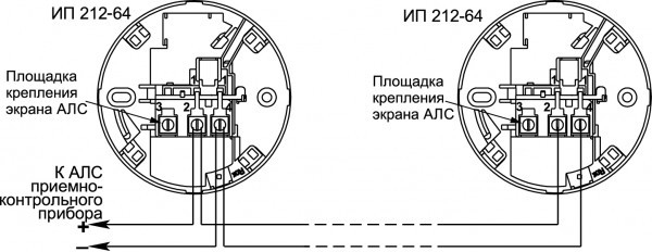 Питание и информационный обмен извещателя осуществляются по двухпроводной АЛС.