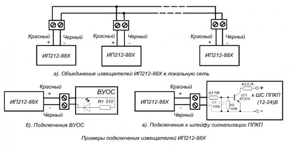 ИП 212-88х (ВУОС) - извещатель пожарный дымовой точечный оптикоэлектронный автономный с встроенной сиреной и световой индикацией, возможностью подключения через клеммы - ВУОС (приобретается отдельно), а также объединения нескольких извещателей в группу.