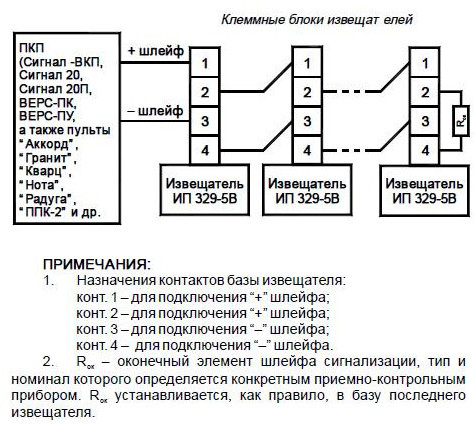 Данный извещатель совместим с любым ППКП, электрические цепи которых имеют параметры, позволяющие подключение данного извещателя.