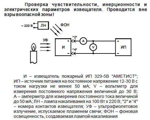 Для проверки работоспособности извещателя используется свеча или лампа накаливания (100Вт).