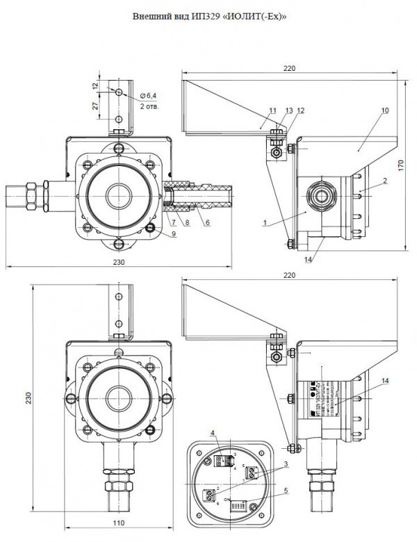 - Извещатель пожарный взрывозащищенный пламени ИП 329 Иолит-Ех 2КВ