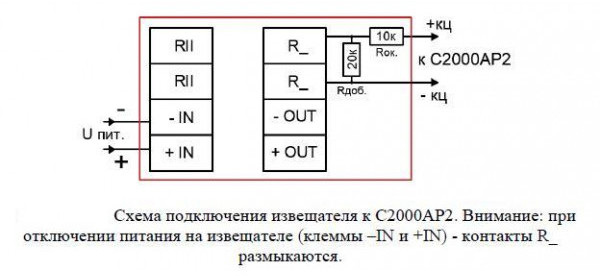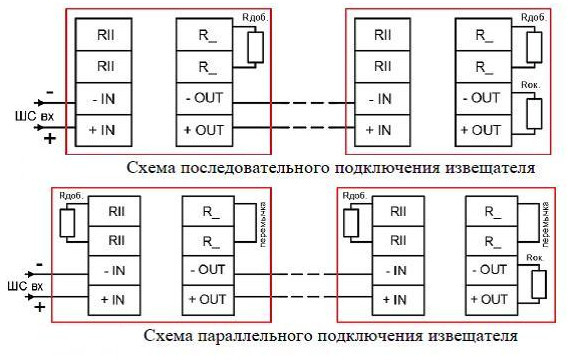 Подключение извещателя осуществляется на размыкание (последовательное подключение) или на замыкание (параллельное подключение).