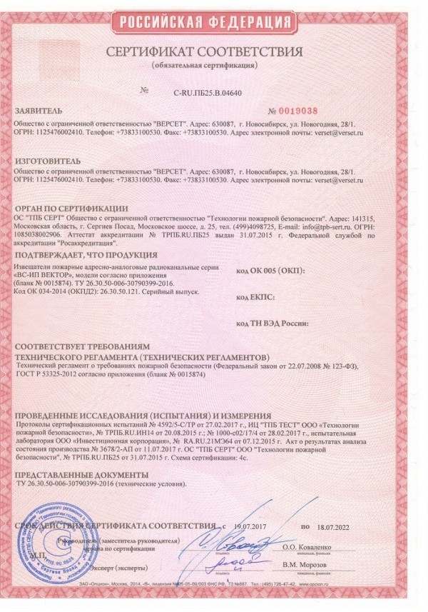 Извещатель пожарный тепловой максимально-дифференциальный адресный радиоканальный ИП101-17Р-A1R ВЕКТОР обнаруживают превышение температуры окружающей среды или скорости роста температуры установленных пороговых значений, формирует тревожный сигнал о пожаре и передает его на прибор по радиоканалу. Извещатели питаются от встроенных автономных источников питания — основной и резервной батарей.