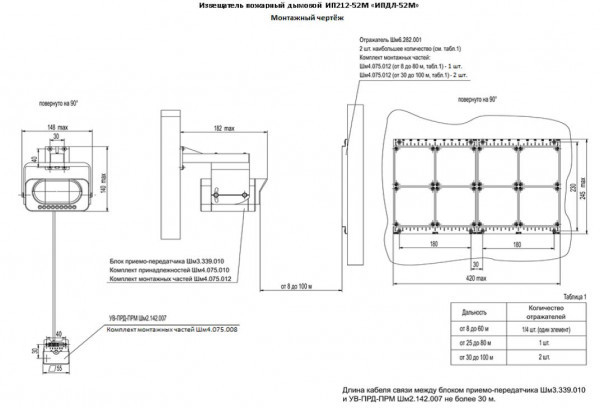 - Извещатель пожарный дымовой линейный оптический ИПДЛ-52М (ИП 212-52М) (8-100 м)