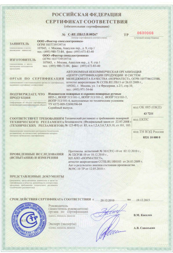 Извещатель пожарный ручной