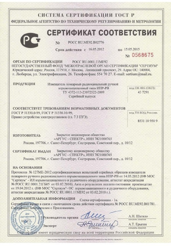 Радиоканальный извещатель пожарный ручной взрывозащищенный