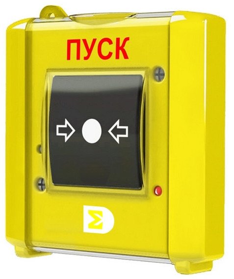 ИР-Пуск исп.08 - ручной многократного действия адресный извещатель жёлтого цвета с надписью "Пуск" формирует команду - "Пуск пожаротушения" подключается в 2-ух проводный адресный шлейф: БЦП Р-08 исп.7 или КА2 исп.08.