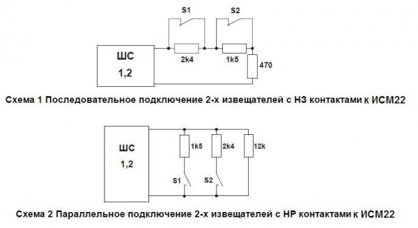ИСМ-22 исп.08-1 - исполнительный модуль адресный обеспечивает подключение 2-ух безадресных шлейфов с извещателями (с НО или НЗ контактами) и подключается в 2-ух проводный адресный шлейф: БЦП исп.7, 7-1, 7У, 7-1У, СКАУ-01 исп.1_2 или КА2 исп.08, 08-1.