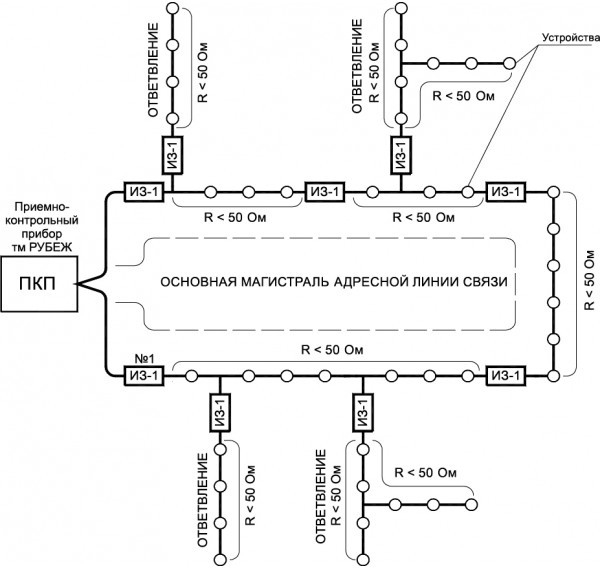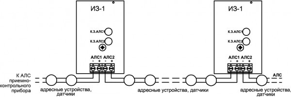Изолятор шлейфа изолирует короткозамкнутые участки адресной линии связи, тем самым обеспечивая работоспособность остальной части линии связи.