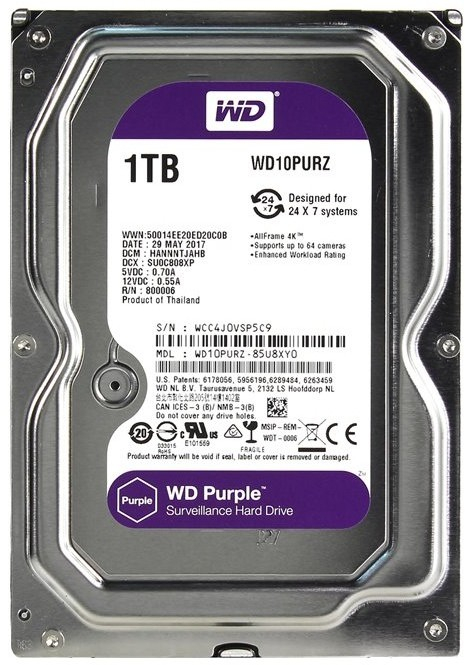 Накопители WD Purple выдерживают в 3 раза большую нагрузку, чем накопители для настольных ПК, и поэтому больше соответствуют высоким требованиям систем видеонаблюдения.