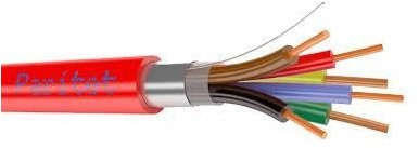 Кабель парной скрутки с медными однопроволочными жилами диаметром 0,80 0,97 1,13 1,38 1,78 мм с изоляцией из керамизирующейся кремнийорганической резины, с общим экраном из ламинированной алюминиевой фольги, в оболочке из ПВХ пластиката пониженной пожарной опасности. Цвет оболочки красный.