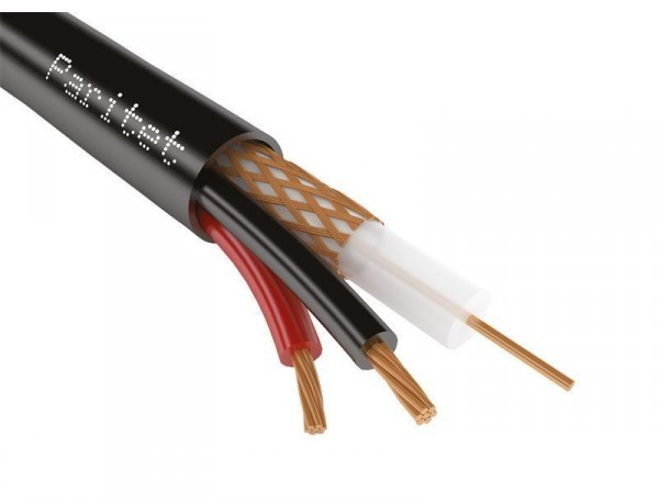 Кабель КВТ-П-2 2х0,5 (Паритет) – комбинированный бюджетный не распространяет горения кабель для передачи телевизионных сигналов и сигналов управления в системах видеонаблюдения с 1-проволочным коаксиальным без внешней оболочки радиочастотным элементом (РК 75-2-111), экраном (оплёткой из медных проволок плотностью - 47%), 2-ух жил питания сечением (0,5 мм2) и рабочим напряжением (до 250 В).