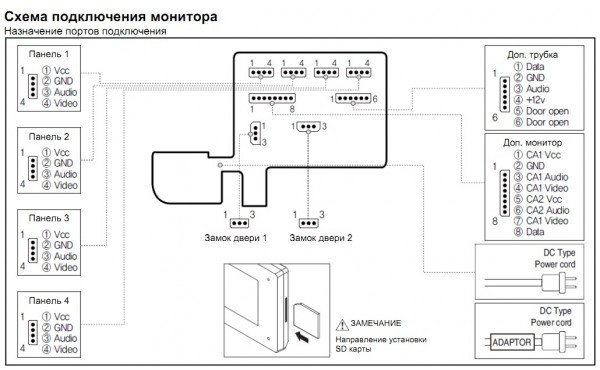 Параллельное подключение суммарно до 2-х мониторов домофонов.