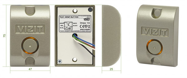 EXIT 300М - металлическая крашенная кнопка управления выходом и аварийным разблокированием электромагнитного замка VIZIT или аналогичных домофона с подсветкой и 1(НО и НЗ) контактами.