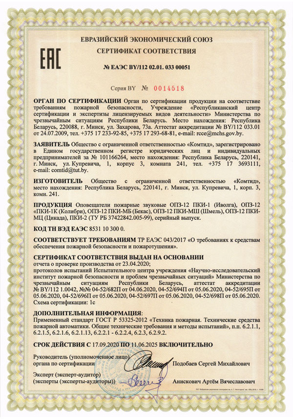 Оповещатель звуковой ПКИ-1 К предназначен для подачи звукового сигнала в системах пожарной, охранной и охранно-пожарной сигнализации и устанавливается внутри помещений отапливаемого и неотапливаемого типа