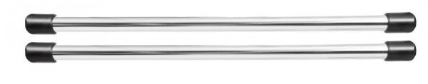 2 поручня из хромированной стали длиной 1,5 м и диаметром 32 мм с 4 черными стальными патрубками, крепеж