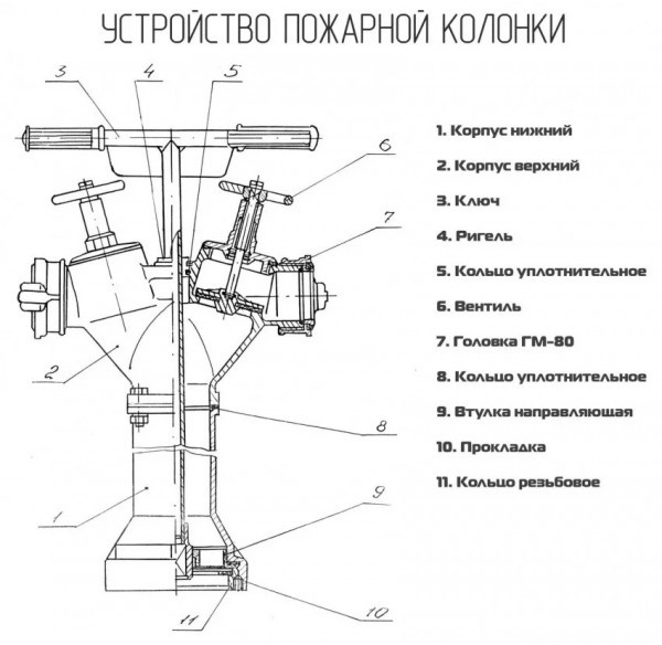 КПА - колонка пожарная стальная с входным патрубком условного диаметра (Ду=125мм), 2-мя выходами через муфтовые головки (ГМ-80), на рабочее давление (до 1 МПа) предназначена для подачи на пожарные трубопроводы и/или напорные рукава потока воды к очагу возгорания или технологическим работам (прочистка линёвок, мойка больших поверхностей объектов и т.п.).