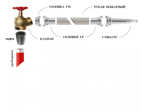 Для напорных пожарных трубопроводов и рукавов, угловой (125 град)