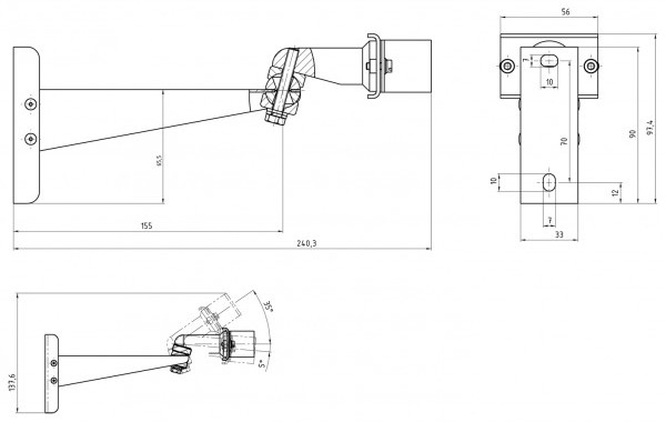 Длина вылета кронштейна - 240,3 мм.