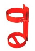 Кронштейн ТВ4 d-140 - кронштейн красного цвета металлический с защёлкой для крепления и неподвижной фиксации 1-ого переносного огнетушителя (ОУ, ОП, ОВП, ОВЭ) с диаметром баллона - до 140мм к горизонтальной или вертикальной поверхности.