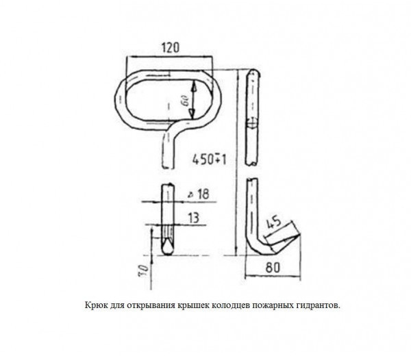 Крюк пож. для открывания люков - крюк металлический чёрного цвета для оперативного открывания любого люка колодцев с пожарными гидрантами или другими коммуникациями, входит с состав комплектации пожарных щитов.