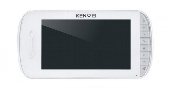 Монитор видеодомофона, цв. LCD TFT 7 , 16 9, PAL/NTSC, hands-free, Встроенная память 80 цветных кадров. 12 полифонических мелодий вызова. Макс.подключение 2 вызывные панели + 2 видеокамеры + 3 дополнительных монитора KENWEI (поддержка внутренних звонков), с возможностью дополнительного подключения к каждому дополнительному монитору дополнительных видеокамер, подключение дверного звонка, подключение внешнего динамика (дублирование сигнала вызова) функция не беспокоить, питание монитора 220В (встроенный блок питания) или от 12V, возможность питания видеокамер от монитора (выход 13,5V,1,5А).