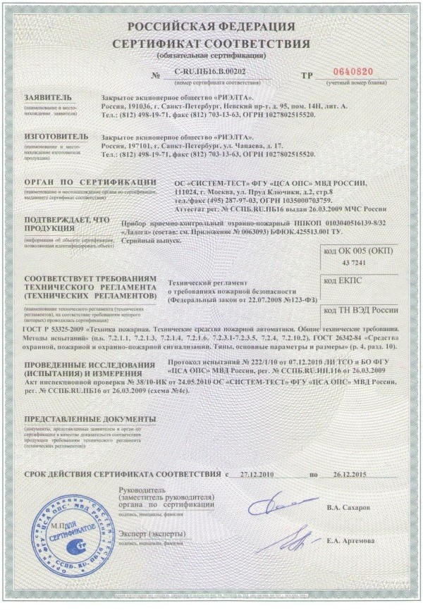 Приборы приемно-контрольные