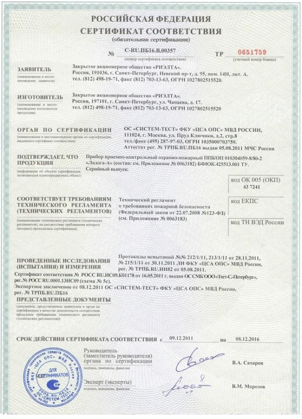 Прибор приемно-контрольный