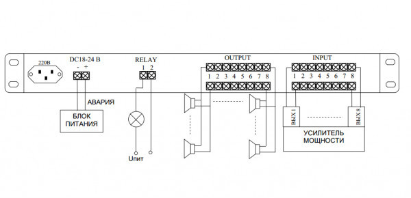 Блок автоматического контроля на 8 линий, 19 , 1U, AC~220В/DC-24В.