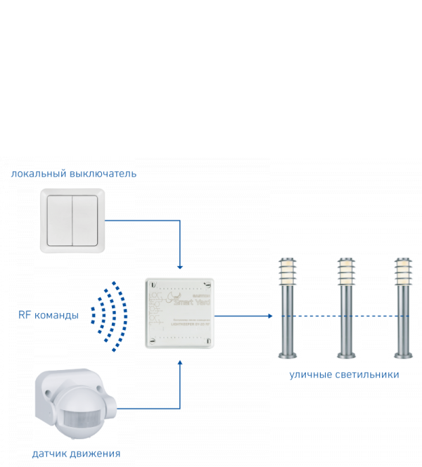 LIGHTKEEPER SY-2D RF (ЛАЙТКИПЕР) - контроллер управляет линией освещения по командам от системного контроллера BASTION SY-NC по радиоканалу, на частоте 433 МГц.