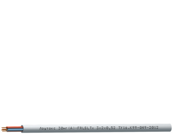 Кабель Лоутокс 30нг(А)-FRLSLTx 1х2х0,52 (Спецкабель) – огнестойкий с однопроволочными 2-мя параллельными жилами с разделяемой перемычкой, с низким дымо- и газовыделением, низкой токсичностью продуктов горения предназначен для одиночной и групповой стационарной прокладки в современных системах сигнализации, в системах контроля доступа, а также в других системах управления, контроля АСУТП и связи, на рабочее напряжение до 300 В.
