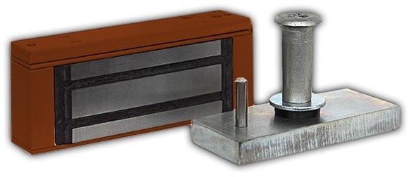 M1-150 (коричневый) - малый коричневого цвета электромагнитный накладной (удерживающий, однодверный) замок с крепёжной планкой или уголком (40х30 - по заказу) в комплекте, без отсека для коммутации проводов, с встроенным контуром размагничивания, в корпусе из оцинкованной стали, окрашенной порошковым методом, с усилием удержания 150 кг, напряжением питания - (9 - 17)В, током потребления - 0,3А, диапазоном рабочих температур от -40 до +40оС, с габаритными размерами - 115х40х25мм, массой - 0,96 кг предназначен для запирания двери толщиной от 35 до 50мм и открывающихся наружу.