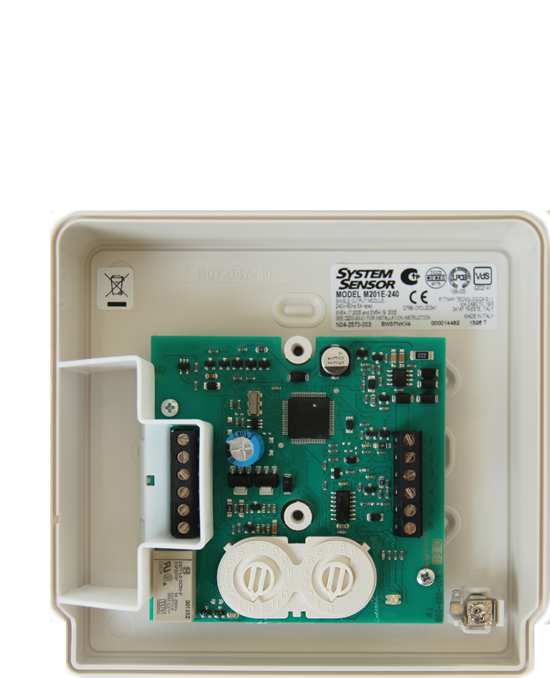 M201E-240 - модуль управления питанием в монтажном боксе подключается в 2-ух проводный адресный шлейф и обеспечивает контроль и управление через 1 выход приборами пожарного управления и другими инженерными системами, предназначен для коммутации переменного тока до 5 А при номинальном напряжении до 250 В.