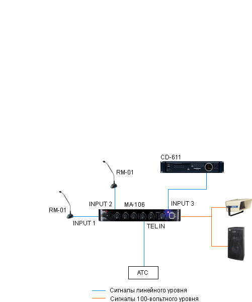 МA-106 - цифровой трансляционный 1-зонный усилитель выходной мощностью 60 Вт предназначен для усиления звукового сигнала с целью его дальнейшей трансляции на громкоговорители 4 Ом или с питанием 70/100 В.