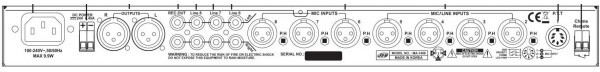 Микшер-предусилитель, 8 микрофонных/ линейных входов, 2 выхода, 220 В(AC)/24 В(DC), 13 Вт, 483x44x235 мм