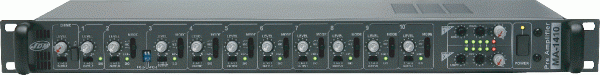 Микшер-предусилитель, 10 микрофонных/ линейных входов, 2 выхода, 220 В(AC)/24 В(DC), 13 Вт, 483x44x235 мм