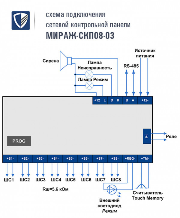 Мираж-СКП08-03 может применяться также в качестве самостоятельного приемно-контрольного прибора.