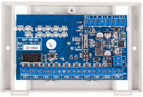 Мираж-СКП-08-03 - сетевая контрольная панель для расширения функциональности базовых контроллеров предназначена для контроля охранных и пожарных шлейфов сигнализации с передачей извещений базовому контроллеру.
