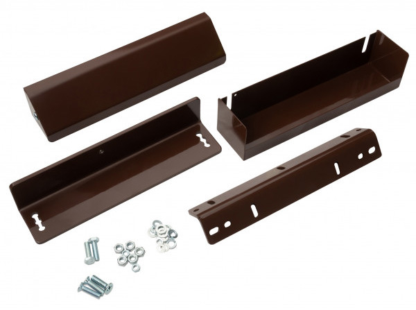 MK AL-300-400PR - Inside коричневый - монтажный комплект коричневого цвета для электромагнитных замков AL-300 PRemium, AL-400 PRemium и AL-400FP на дверях, открывающихся внутрь, состоит из уголка корпуса, уголка якоря, кронштейна, кожуха, кожуха кронштейна и элементов крепежа.