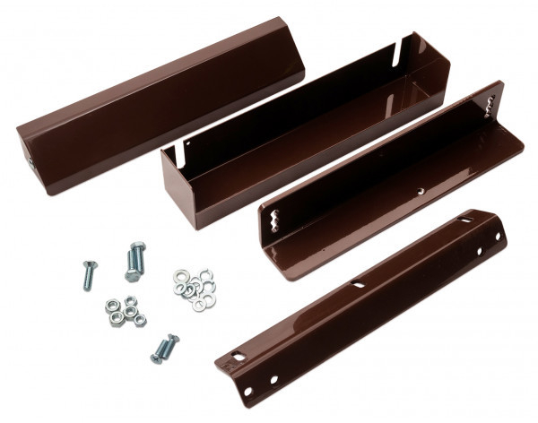 MK AL-200PR - Inside коричневый - монтажный комплект коричневого цвета для электромагнитных замков AL-200 PRemium и AL-200FB на дверях, открывающихся внутрь, состоит из уголка корпуса, уголка якоря, кронштейна, кожуха, кожуха кронштейна и элементов крепежа.