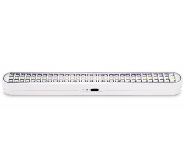 Светильник аварийного освещения светодиодный непостоянного действия с энергосберегающим режимом, 220-240В, 90 сверх ярких светодиодов, световой поток 750 Лм, время свечения - до 6 часов, защита от перезаряда и глубокого разряда, 550х53,5х61 мм, 0,5 кг, 0С..+40С